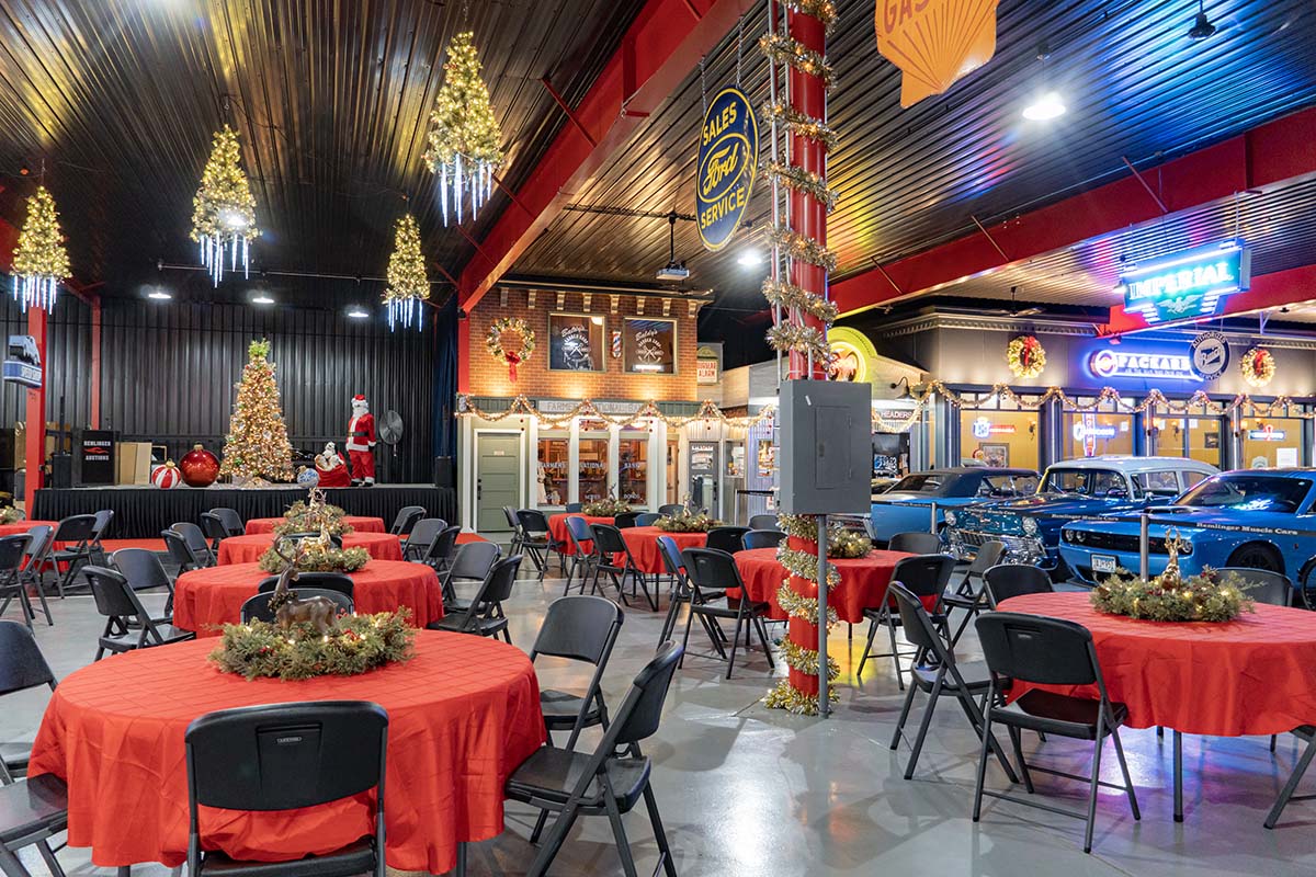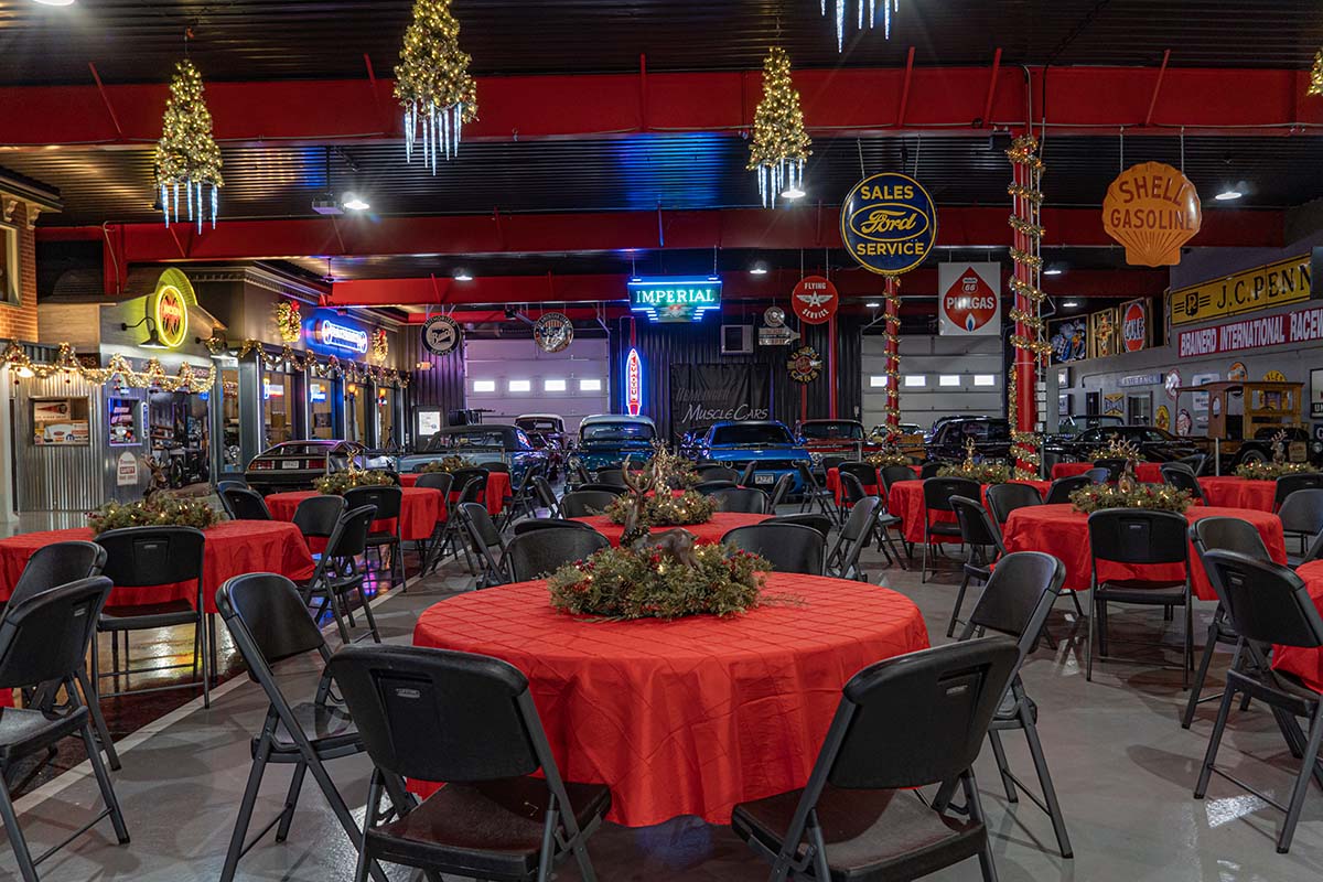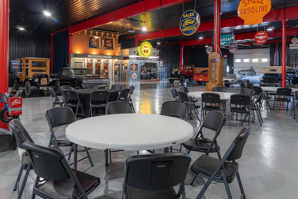 Impress your guests with our unique event venue! Our space includes an open layout and a custom stage that can comfortably seat anywhere from thirty to five hundred guests. Your guests will have full access to our museum, including the finest private collection of vintage drag race cars. From the vintage bikes to the collector cars and custom displays, our Winona MN event venue has the entertainment already set up! Book our space for non-profit fundraisers, Christmas parties, class reunions, corporate parties and more. Invest this year’s event budget into providing a unique experience for your guests and save thousands on your bar tab by bringing your own beverages. Outdoor accommodations are available. Venue rental includes chairs, tables and linens. Parties are encouraged to arrange catering for their events.