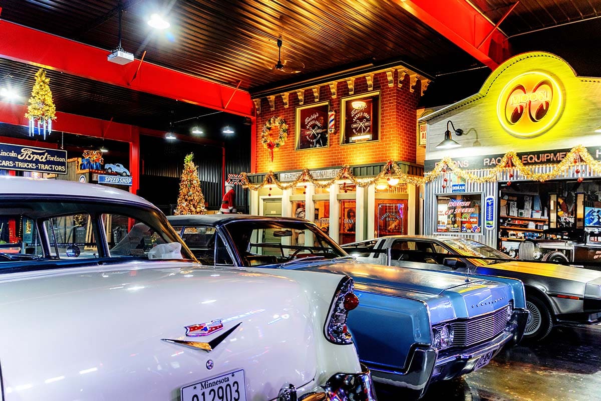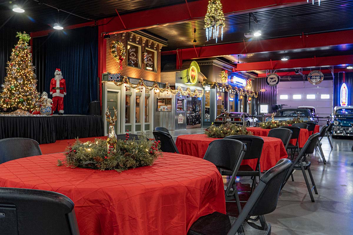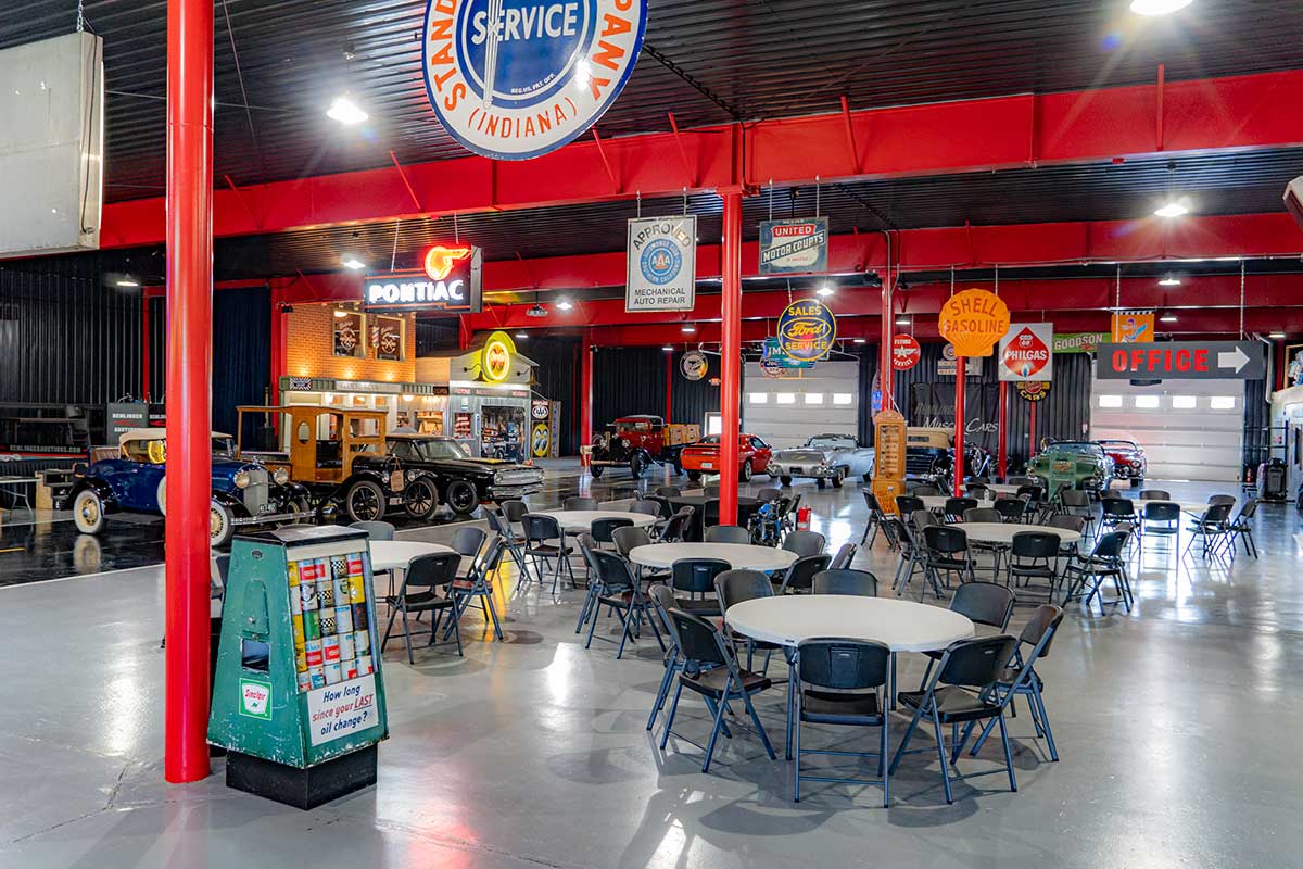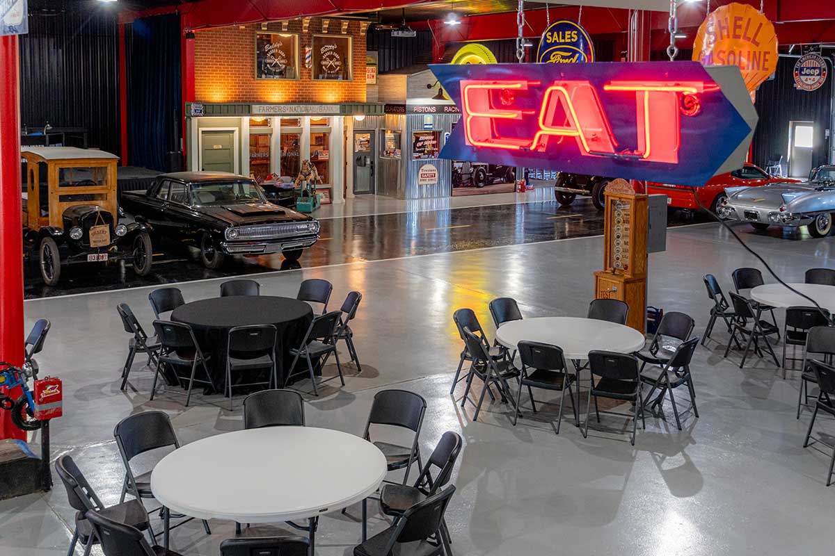 Impress your guests with our unique event venue! Our space includes an open layout and a custom stage that can comfortably seat anywhere from thirty to five hundred guests. Your guests will have full access to our museum, including the finest private collection of vintage drag race cars. From the vintage bikes to the collector cars and custom displays, our Winona MN event venue has the entertainment already set up! Book our space for non-profit fundraisers, Christmas parties, class reunions, corporate parties and more. Invest this year’s event budget into providing a unique experience for your guests and save thousands on your bar tab by bringing your own beverages. Outdoor accommodations are available. Venue rental includes chairs, tables and linens. Parties are encouraged to arrange catering for their events.
